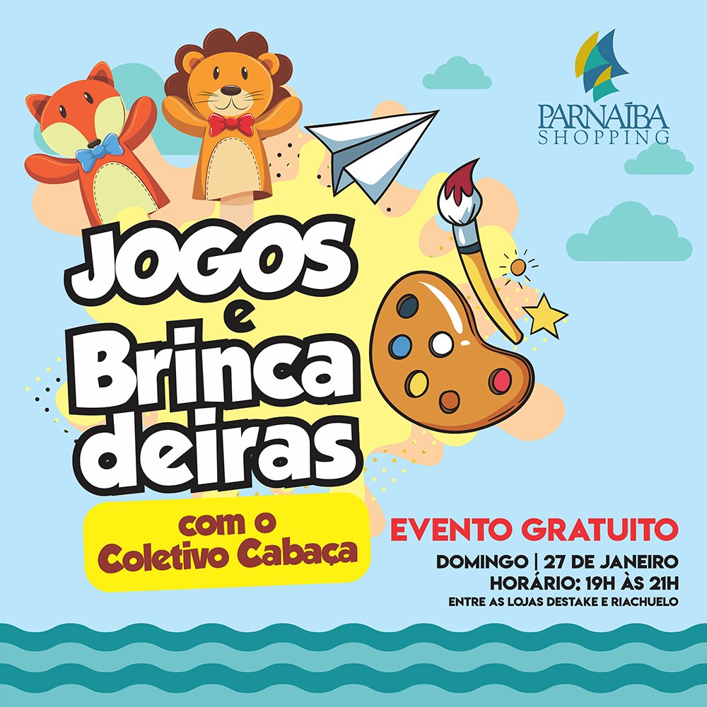Neste domingo, dia 27, o Parnaíba irá receber o Coletivo Cabaça, que vai realizar oficinas, jogos e brincadeiras na área que está localizada entre as lojas Destake e Riachuelo, das 19h às 21h. As atividades são gratuitas e todos os clientes são convidados a trazer suas crianças para participar.