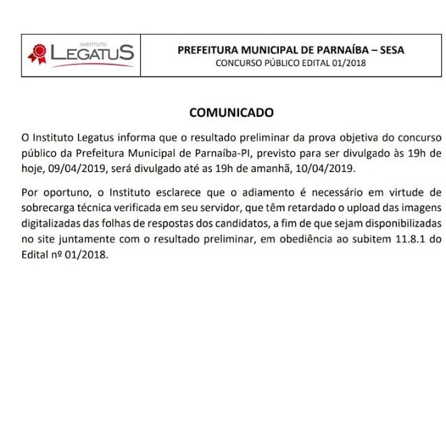 Concurso Público Prefeitura de Parnaíba: Resultado nesta quarta-feira(10) Posted by Bernardo Silva on 9 de abril de 2019 in Cidade Cidade