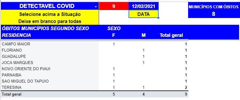 Cinco mulheres e quatro homens foram vítimas da Covid-19. Elas eram naturais de Campo Maior (86 anos), Novo Oriente (92 anos), Parnaíba (62 anos), São Miguel do Tapuio (82 anos) e Teresina (69 anos). Já os do sexo masculino eram das cidades de Floriano ( 78 anos), Guadalupe ( 64 anos), Joca Marques (73 anos) e Teresina ( 72 anos).  Todas as vítimas possuíam doenças preexistentes.