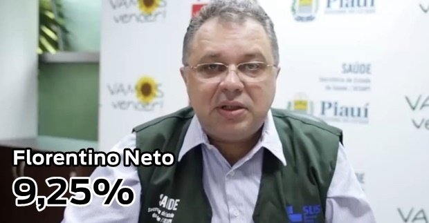Para deputado federal, Florentino Neto aparece em primeiro com 9,25%, depois