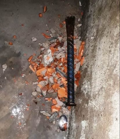 Um dos presos identificado como John Gervásio dos Santos Morais, foragido da Major Cesar, usou uma talhadeira para quebrar a parede da cela 01 e fugir daquela delegacia. Fonte: BCatita. Fotos: Bcatita. Edição: APM Notícias.
