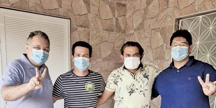 O secretário de Saúde, Florentino Neto, sai das eleições de 2020 fortalecido, apesar de não ter disputado nenhum cargo eletivo. Ele comemora a vitória de muitos prefeitos e vereadores e amplia a sua liderança para além dos limites de Parnaíba. Junto com o pleito, nasce uma liderança petista regional. Aqui, Florentino com o prefeito eleito de Caxingó, Magnum Cardoso, o vereador eleito, Carlinhos Maricota, e o assessor Neris Júnior.