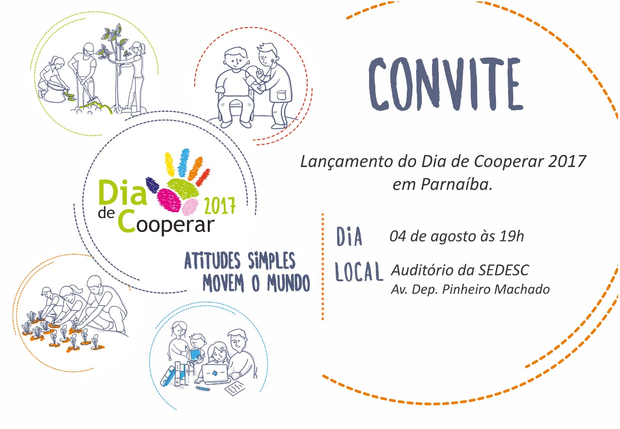 A campanha “Dia de Cooperar” terá seu lançamento em Parnaíba no próximo dia 4, em evento que deve reunir cooperativas, parceiros e voluntários para conhecer detalhes do evento comemorativo do Dia C na cidade, que levará serviços gratuitos de saúde, estética e cidadania para a população. O lançamento será realizado às 19h no Auditório da SEDESC, na Av. Dep. Pinheiro Machado.