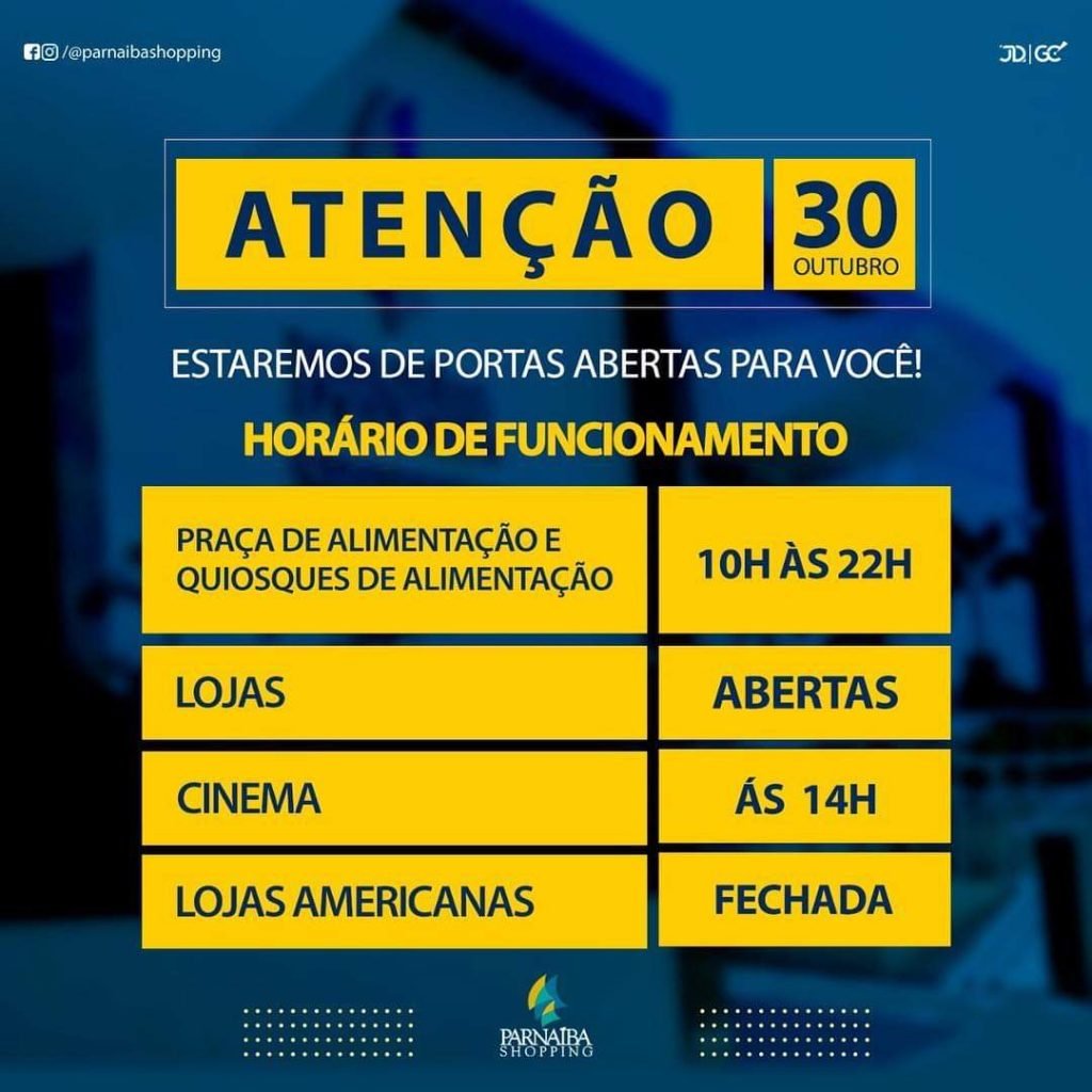 Na terça-feira, dia 30, o Shopping Parnaíba está funcionamento normal.