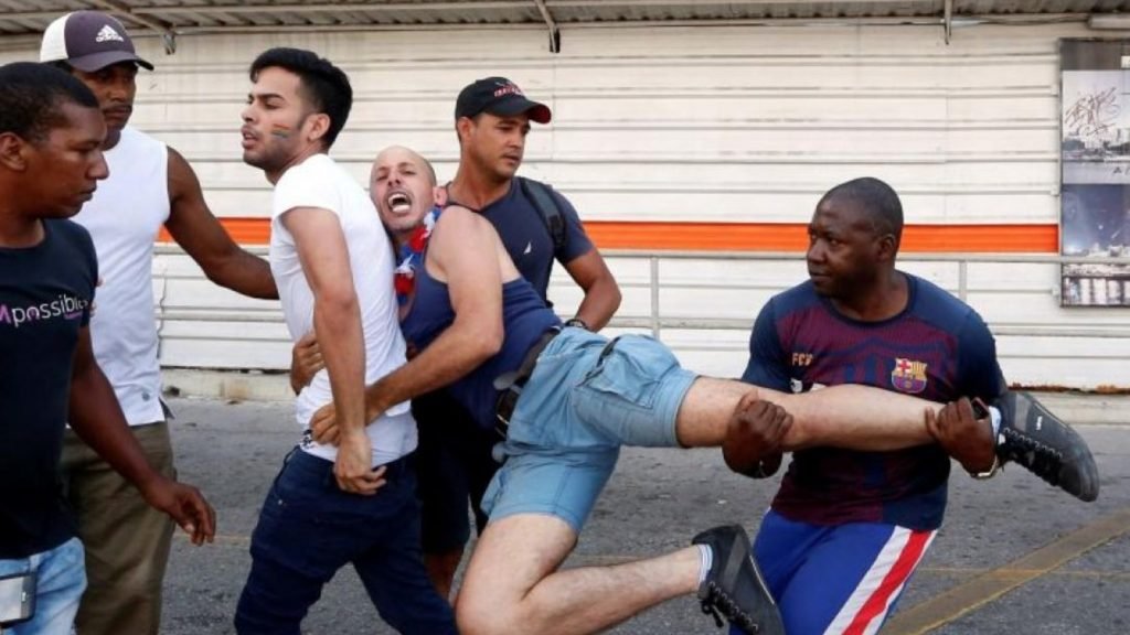 O jornal “El Comercio”, do Peruo, mostrou flagrante de policiais disfarçados arrastando ativista LGBT na marcha proibida de Havana.