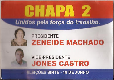 de que a sua Chapa (2) “Unidos Pela Força do Trabalho” será a vitoriosa nas eleições do SINTE –