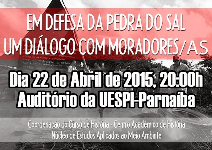 É diante deste golpe e devastação ambiental que convidamos a comunidade civil e acadêmica para participarem do evento “Em defesa da Pedra do Sal – Um diálogo com moradores/as”; um encontro com pescadores/as, marisqueiros/as, catadores/as de frutas silvestres e rendeiras, e conhecer através deles a realidade vivida na região e a luta contra tais empreendimentos.