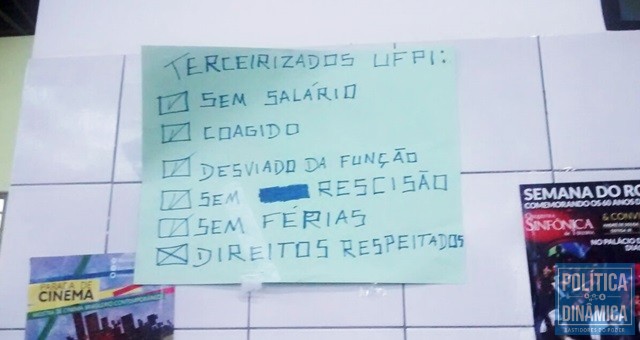 O problema com os terceirizados da Universidade Federal do Piauí (UFPI) parecem estar só aumentando. Sem receber e com direitos reduzidos, os funcionários já paralisaram no início da semana e prometem continuar os protestos caso não seja regularizada a situação. Estudantes da própria UFPI também têm se mobilizado para garantir apoio aos trabalhadores. Mas a confusão é complicada. A UFPI garante que já regularizou a situação com a empresa Salmos LTDA Comércio Representação e Serviços, que contesta a versão da instituição e ameaça acabar com contrato.