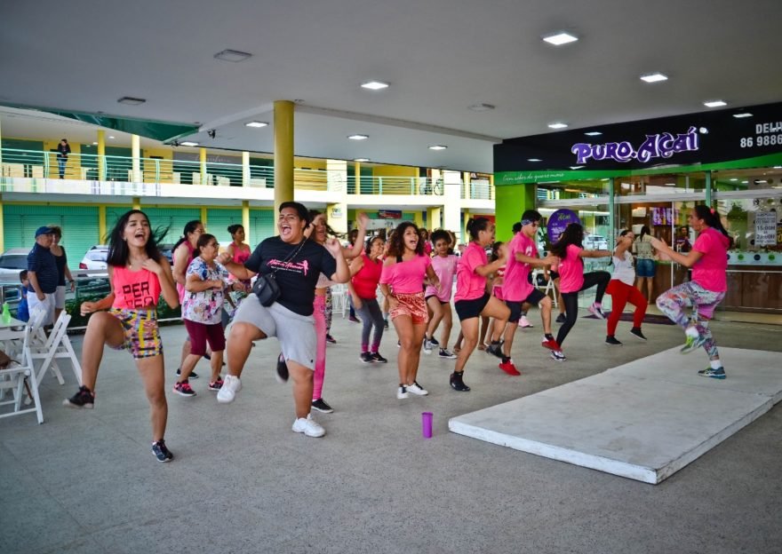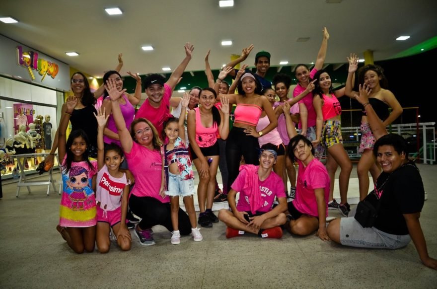 Blusas rosas, palco, professores preparados e sorriso no rosto de muitas mulheres, foi o cenário ideal para aulão na tarde do último domingo (27), um evento promovido pela Escola de Dança Márcia Alencar com apoio do Puro Açaí e Mega Espaço Fitness.