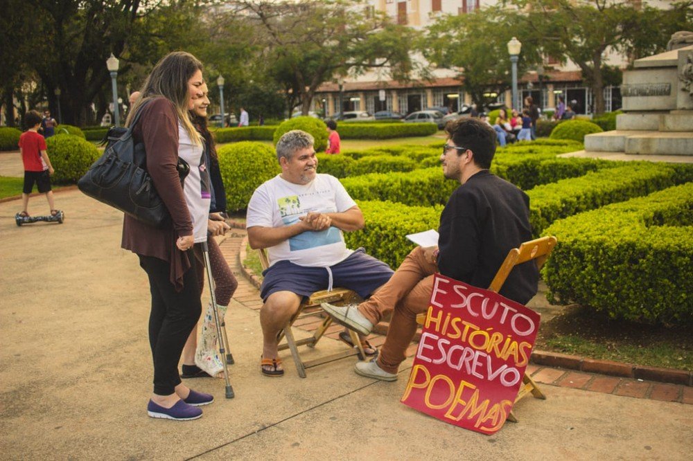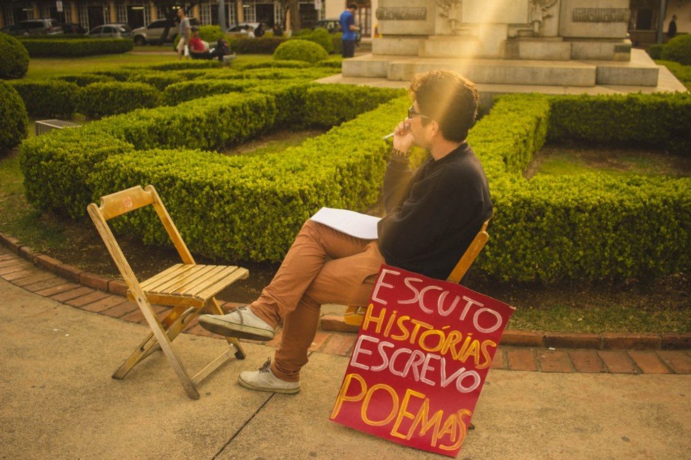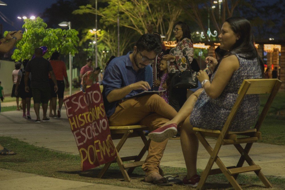 Sentado em uma praça, diante de uma cadeira vazia, o escritor piauiense Ithalo Furtado faz um convite inusitado às pessoas que caminham pelas cidades: que sentem com ele e contem sua história, para que o autor as transforme em poemas. Natural de Parnaíba, Ithalo planeja viajar pelo Brasil levando seu projeto de transcrever vidas em versos.