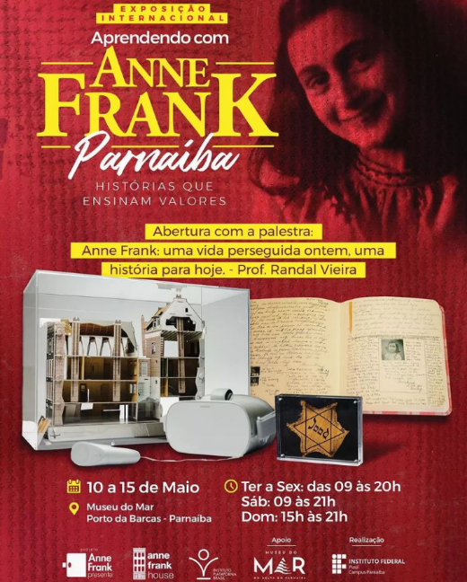 Dando início à abertura da exposição internacional denominada “Aprendendo com Anne Frank, acontecerá hoje(10), no Museu do Mar, no Porto das Barcas, às 18 horas, a palestra :”Anne Frank- uma vida perseguida ontem, uma história para hoje”. O palestrante será o professor Randal Vieira. Estão todos convidados a fazerem esse mergulho na história.