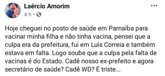 Quando falta o produto nas UBS’s é porque houve atraso no repasse do Governo Federal ou um desinteresse (mais provável) da Secretaria Estadual de Saúde (boicote político para prejudicar o gestor misturado com um pouquinho de incompetência) em enviar as vacinas às prefeituras. Das duas, uma! (Por Ribamar Aragão)