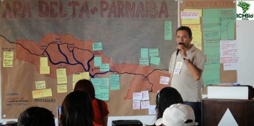 O sociólogo do ICMBio Fernando Gomes está apresentando o projeto “Participação e Controle Social na Gestão Ambiental da APA Delta do Parnaíba: dos Conselhos de Papel ao Papel dos Conselhos Municipais de Meio Ambiente”.