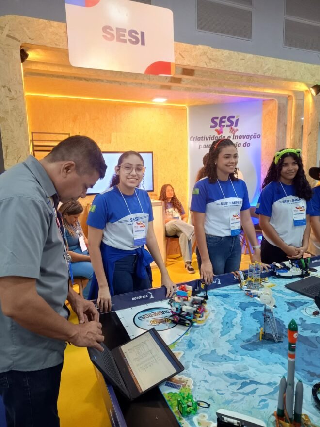 No SESI, os alunos que foram campeões estaduais das Olimpíadas de Robótica fizeram demostrações de como a robótica pode ser usada na indústria, além de exposições e equipamentos de realidade virtual.
