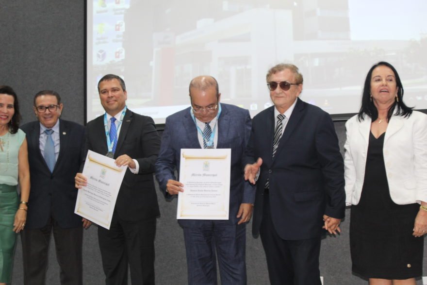 Homenagem aos visitantes com o Diploma e Medalha do Mérito Municipal