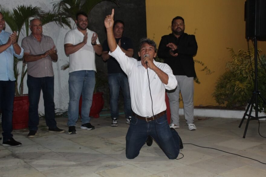 Ao fazer uso da palavra o ex-deputado Tererê se ajoelhou para agradecer a Deus por haver possibilitado a união do grupo, onde todos se comprometem em trabalhar pela implantação de um novo modelo de administração, com foco no emprego e na geração de oportunidades para os jovens
