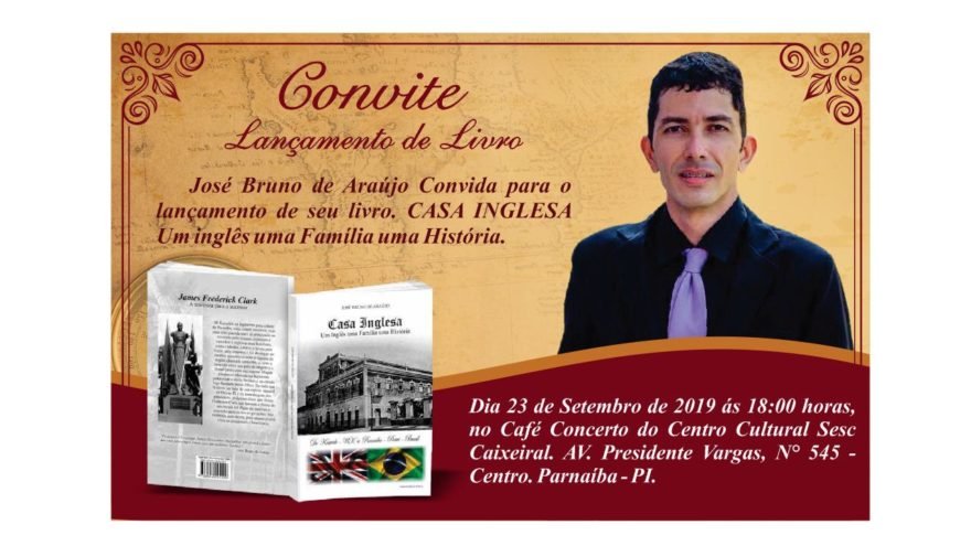 O professor, historiador e escritor José Bruno de Araújo concluiu e agora lança o livro Casa Inglesa, Um Inglês, Uma Família, Uma História, dia 23 de setembro, às 18h no Café Concerto do Centro Cultural Caixeiral, na Avenida Getúlio Vargas, região central de Parnaíba.
