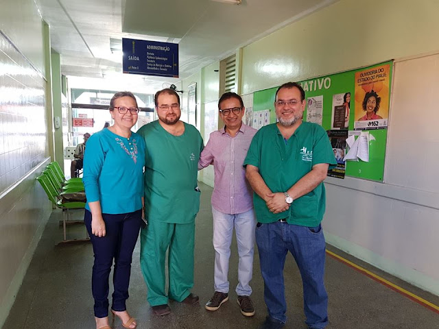 Na foto Dr. Hélio ao lado do Dr Paulo Augusto, do Dr Ângelo e da diretora Adrizia.