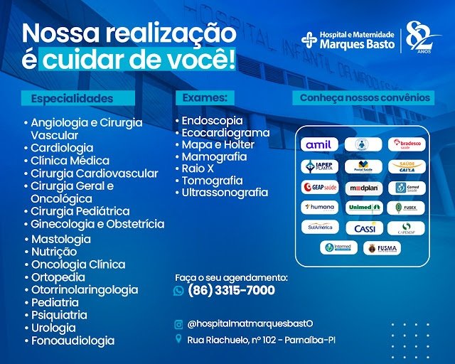 #HospitalMarquesBasto #Piaui #Parnaiba #AgendesuaConsulta #Convenios #Planodesaude #Saude #Bemestar #especialidades