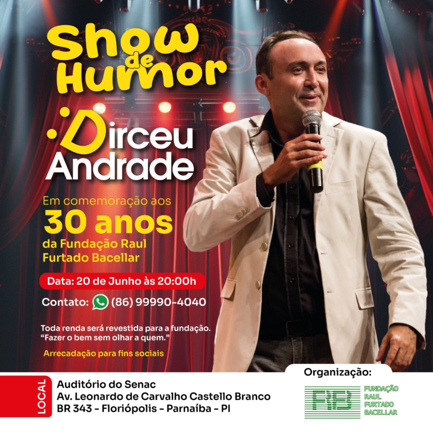 Completando trinta (30) anos de existência e ininterruptas atividades em prol da população de Parnaíba, a Fundação Raul Furtado Bacellar realizará show beneficente com o humorista e jornalista Dirceu Andrade, ele que também está comemorando 30 anos de carreira neste 2024.