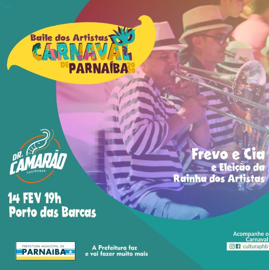 Ao noite acontece ao som de marchinhas de Carnaval, com o grupo Frevo e Cia comandando a festa de confraternização dos artistas de Parnaíba. Mais uma vez acontecerá a a eleição da Rainha dos Artistas!