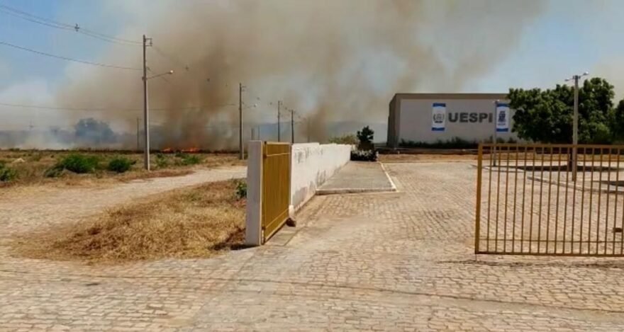 O incêndio iniciou em um terreno baldio e atingiu rapidamente o campus da UESPI em Picos.