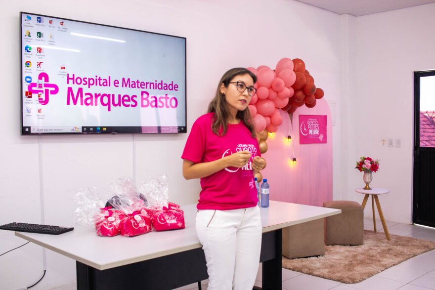 O mês de outubro, dedicado à conscientização do câncer de mama, motiva o autoexame e a prevenção para um diagnóstico precoce da doença. O Hospital Dr. Marques Basto, iniciou suas atividades nessa quinta-feira, dia 06, em um encontro entre as mulheres colaboradoras da instituição e convidados como a Mastologista Michelina Barroso, o Oncologista Antonio Moreira, Nutricionista oncologica Renata Meireles, psicóloga Kênia Araújo e pacientes oncológicas – Erenice Carvalho e Joyce Bezerra.