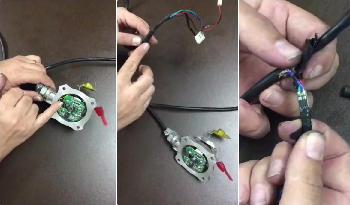 O TÉCNICO MOSTRA COMO OS FRAUDADORES INSTALAM UM MICROCHIP ENVOLTO EM FITA ISOLANTE PARA MASCARAR AS INFORMAÇÕES PASSADAS DO PARA A BOMBA