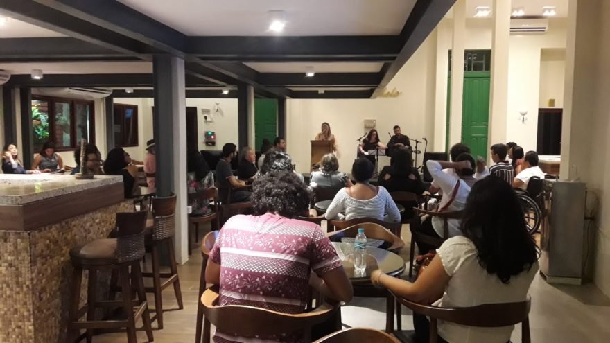 Com música e poesia, o evento aconteceu no Café Concerto da União Caixeiral e contou com a participação de escritores e amantes da literatura. Voz e violão ficou por conta do  casal, também escritores, Jailson Junior e Morgana Sales.