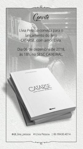 A escritora Lívia Pessoa lança dia 06 no SESC Caixeiral às 18h seu primeiro livro, Catarse, com Amor Lívia.