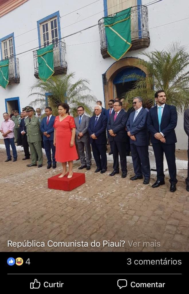Chega a ser ridículo o que fizeram com a governadora em exercício Regina Sousa. Ainda que possam justificar que o praticável tinha a cor do vestido da governadora, a sensatez recomendaria que o cerimonial cobrisse com algo de outra cor.