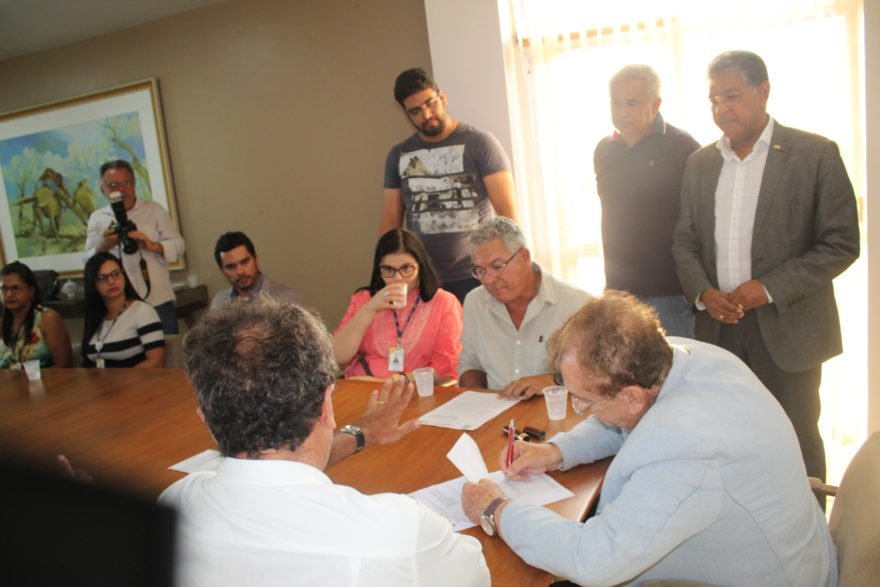 Na presença de representantes do empresário Valdeci Cavalcante o prefeito de Parnaíba, Mão Santa, sancionou no final da tarde desta quarta-feira(4) o projeto de lei aprovado pela Câmara Municipal, doando um imóvel de propriedade do município à Federação do Comércio de Bens, Serviços e Turismo do Estado do Piauí – FECOMÉRCIO, “com fins de restauração e reforma, para funcionamento de atividades da própria federação, do SESC e SENAC no município.
