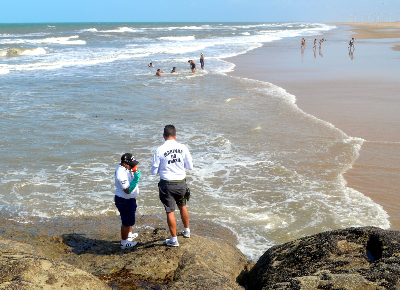Durante o domingo, 17 de novembro, uma equipe da Marinha do Brasil esteve na Praia da Pedra do Sal fazendo mais um trabalho de monitoramento de manchas de óleo na praia. A mesma ação vem sendo realizada em outras praias piauienses. Um navio da Marinha está auxiliando nesse serviço no litoral do Piauí.