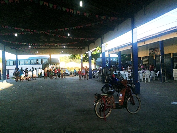 Os passageiros fazem parada no mercado de Fátima para tomarem café da manhã e para comprarem de frutas para levarem ao lazer na praia.
