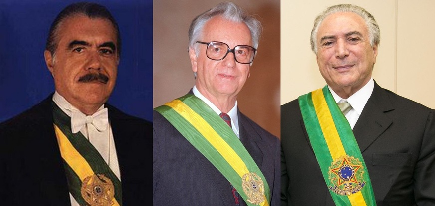 Michel Temer, o quarto vice a chegar a presidente. Ganhou a eleição na chapa Dilma PT e Michel PMDB. Dilma na Presidência, não sei se por incompetência ou inexperiência, cercou-se de bandidos por todos os lados. Seu governo era um barco navegando em um mar de lama, com a quilha quebrada, a vela rasgada, o leme partido e quadrilhas de políticos saqueando tudo o que era possível. Não deu outra coisa: perdeu o mandato e chegou então a vez do quarto vice assumir a Presidência do País. Lembram dos homens que apoiaram Sarney no inicio do seu governo? Temer agora é apoiado por Renan Calheiros, Romero Jucá, Jáder Barbalho, Rodrigo Maia, Luis Eduardo Alves, Elizeu Padilha, Edson Lobão e muitos outros que estão presos ou investigados pela Polícia Federal.