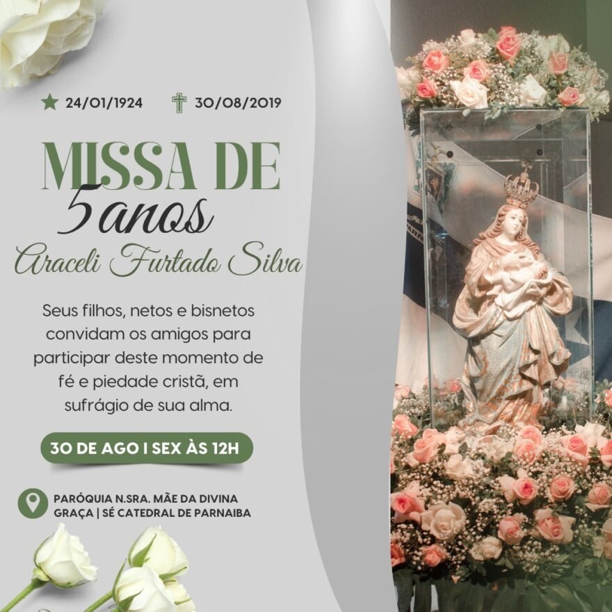 Missa de 5 anos:Araceli Furtado Silva Posted by Bernardo Silva on 28 de agosto de 2024 in Cidade Cidade