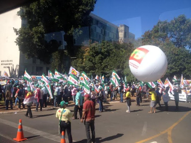 A Contag protestou contra a reforma da Previdência e cobrou a definição de política habitacional no campo e reforma agrária. Segundo a Polícia Militar, uma faixa do Eixo Monumental ficou interditada por causa da manifestação.