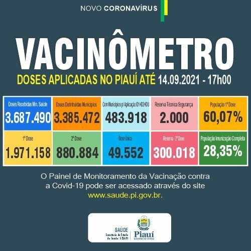 Dos leitos existentes na rede de saúde do Piauí para atendimento à Covid-19, há 168 ocupados, sendo 85 leitos clínicos, 75 UTIS e 8em leitos de estabilização. As altas acumuladas somam 22.628 até o dia 14 de setembro de 2021.