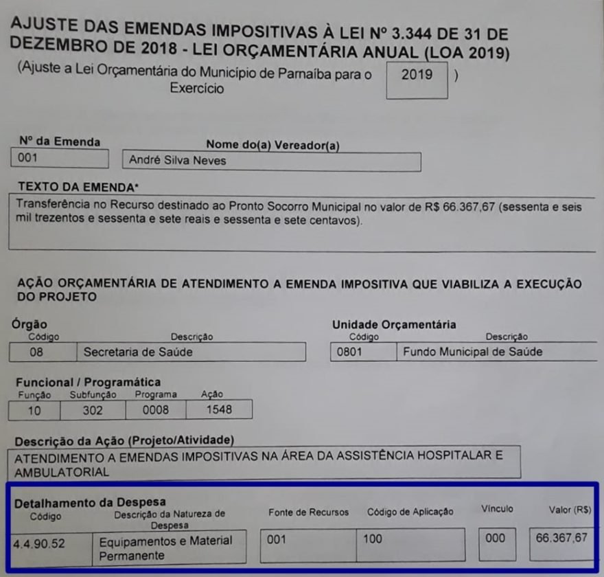 O centro de saúde recebeu recursos de mais de R$ 66 mil destinados pelo vereador André Neves, oriundos de emendas impositivas, que foram usados para a compra de equipamentos e material permanente.