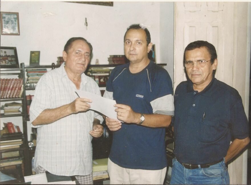 Na foto Rubem Freitas homenageia outro grande amigo: o poeta e juiz aposentado Elmar Carvalho. Nós acompanhamos ao lado