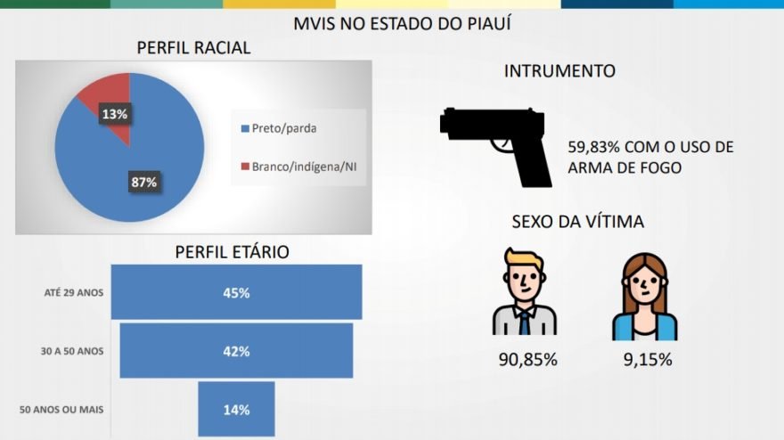 Em contrapartida, dados divulgados pela própria secretaria de Segurança Pública no Relatório da Criminalidade, apontam que os crimes no interior do Piauí tiveram um crescimento de 16,77%, quando se é comparado os anos de 2018 e 2019. Com destaque para a crescente no número de Mortes Violentas Intencionais (MVIS), onde, no ano passado, foram contabilizadas 348 mortes, contra os 298 registradas em 2018. Dessas mortes, 90,85%, foram de pessoas pretas ou pardas, sendo 45% de jovens de até 29 anos.