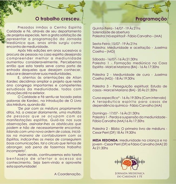 Jornada Mediúnica do Caridade e Fé inicia nesta quinta-feira (14)