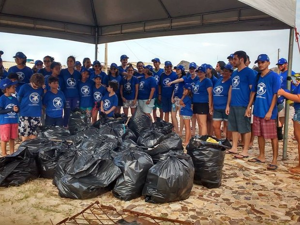 Em uma hora, voluntários recolhem 80 sacos cheios de lixo em praia no PI