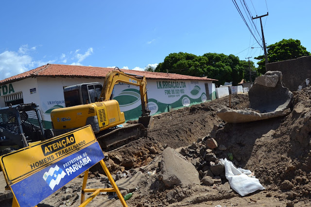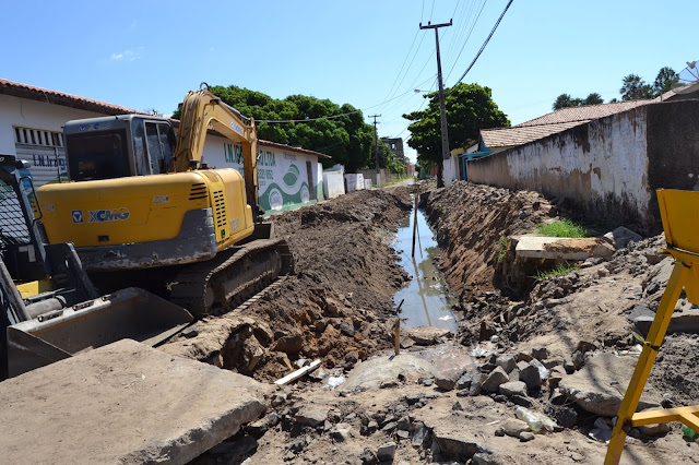 Foram retomadas hoje estas obras, iniciadas há dias e que estavam paradas sábado, no bairro Nossa Senhora do Carmo.