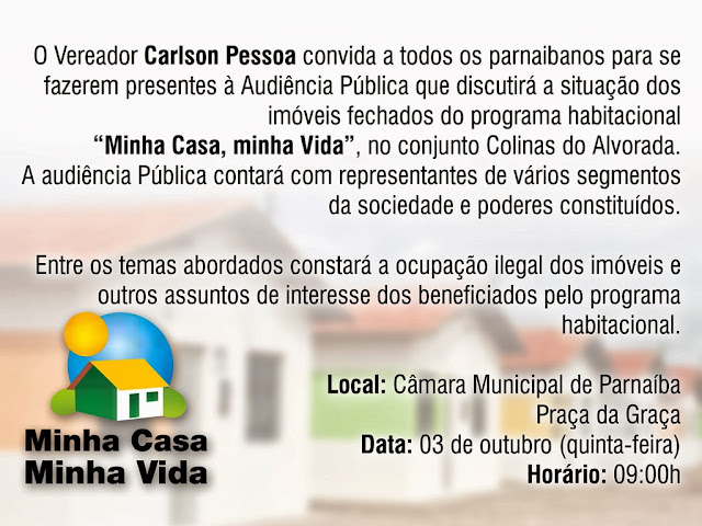 no mesmo horário, a audiência pública será para tratar da ocupação irregular de