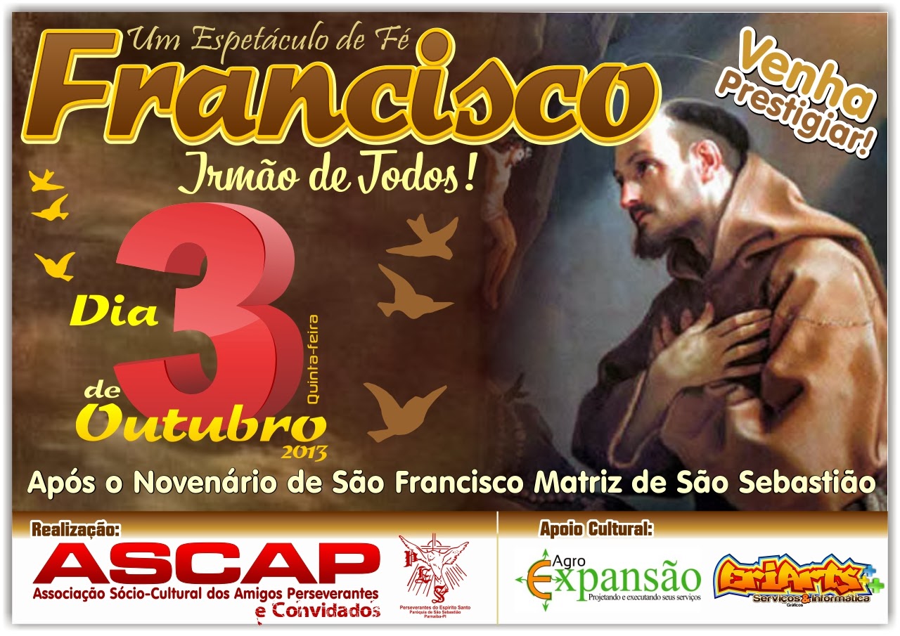 Espetáculo “Francisco Irmão de Todos” será apresentado quinta feira