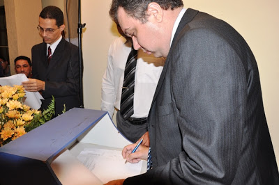 solenidade na prefeitura, entre autoridades municipais e do judiciário