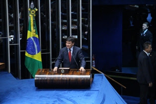 Estreia do senador Wellington Dias (PT-PI) ao assumir a liderança do PT: levar ao conhecimento do Plenário o apoio da bancada à eleição de Renan Calheiros (PMDB-AL) para Presidente da Casa. Pelo respeito ao partido com maior representação, o PMDB, e a aliança que os dois partidos deverão manter em 2014. (foto: Mauro Sampaio-Acessepiauí)