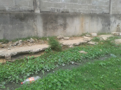 A calçada está toda destruída e com