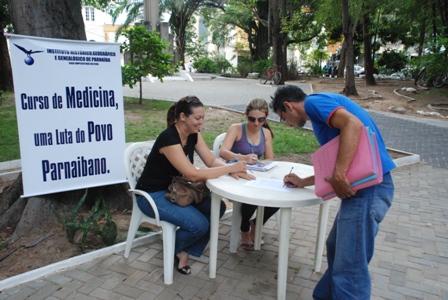 Estão sendo colhidas assinaturas da população, em Parnaíba, num abaixo assinado que será enviado aos ministros da saúde, Alexandre Padilha, e da educação, Aloízio Mercadante, na defesa da implantação do curso de medicina no campus da Universidade Federal do Piauí.